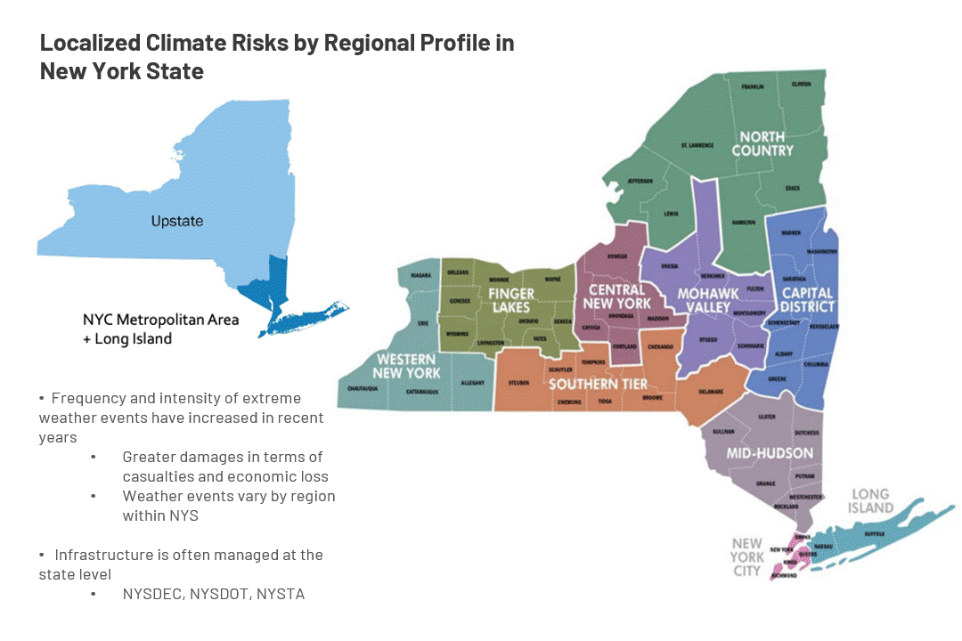 New York State’s critical infrastructure,including power, water, telecommunications, and transportation is increasingly exposed to climate-driven disruptions such as flooding, extreme heat, and winter storms. At the same time, infrastructure systems are major contributors to greenhouse gas emissions and air pollution, creating a dual challenge: improving resilience to climate impacts while accelerating decarbonization. These two objectives are often addressed separately, despite their interdependence.