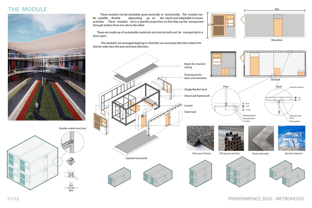 Metro-hood reimagines underutilized transit station parking infrastructure as mixed-use community environments that integrate mobility, housing, and public space. The project proposes a modular spatial framework to transform transit nodes into active urban destinations supporting social interaction, economic activity, and temporary housing. By leveraging transit accessibility and adaptive infrastructure, the design demonstrates how mobility corridors can evolve into inclusive urban ecosystems.
