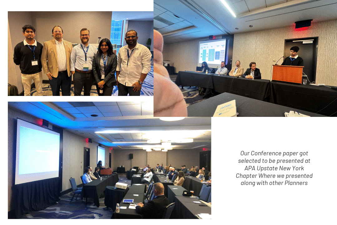 The project was presented at the APA Upstate New York Conference, where transportation planners, regional agencies, and public-sector practitioners engaged with the model’s capabilities.